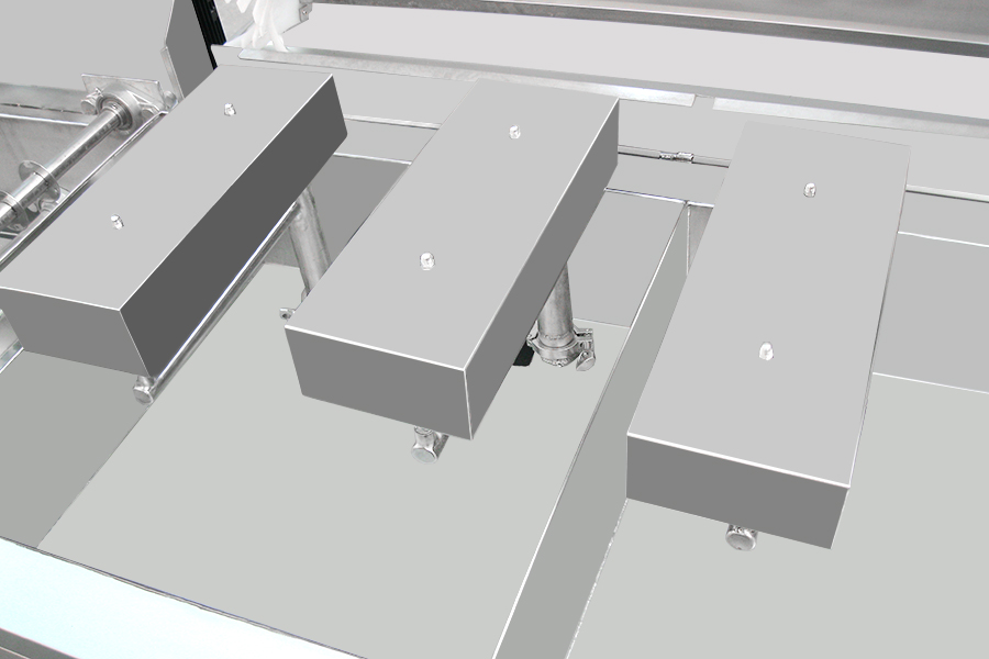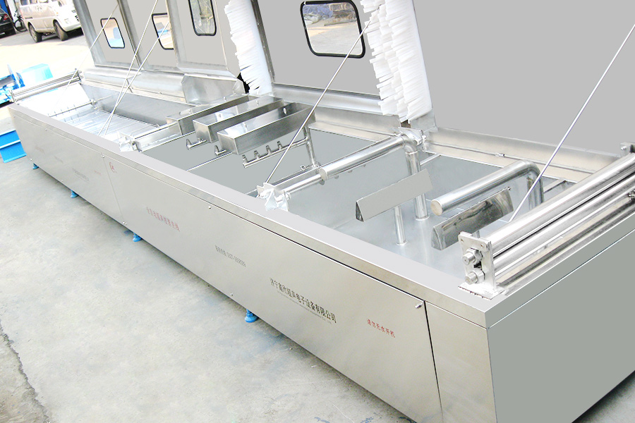 該設(shè)備有上下料網(wǎng)帶、超聲波清洗工位、噴淋漂洗工位、高壓風(fēng)切、熱風(fēng)烘干工位、溫控水加熱系統(tǒng)、風(fēng)機、溫控空氣加熱系統(tǒng)、移動式風(fēng)刀、PLC+觸摸屏控制系統(tǒng)、管路系統(tǒng)及智能電器控制系統(tǒng)等組成。自動進排液和自動加溫系統(tǒng)完全實現(xiàn)了無人干預(yù),自動運行,很大程度上降低了工人的勞動強度。先進的霧氣處理系統(tǒng)可以將清洗時產(chǎn)生的霧氣冷凝回流,空氣經(jīng)過濾和活性炭吸附后排出。