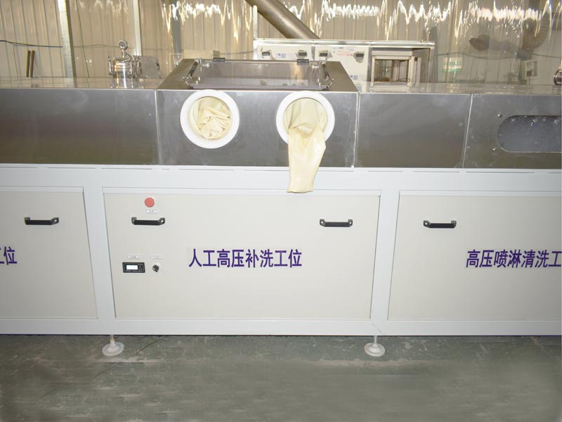 該設(shè)備為全自動高潔凈度清洗機,整機為網(wǎng)帶鏈條式傳動機構(gòu)。采用超聲波清洗、人工高壓補洗、高壓噴淋清洗、慢拉脫水工位、高壓風(fēng)切、人工補吹、干燥爐、風(fēng)冷等工藝。該設(shè)備共5個工位:上料工位、超聲波清洗工位、人工高壓補洗工位、高壓噴淋清洗工位、慢拉脫水工位、高壓風(fēng)切工位、人工補吹工位、干燥爐、風(fēng)冷工位、下料工位。該設(shè)備清洗效果好、提高了工件的清潔度。該機結(jié)構(gòu)設(shè)計及工藝安排合理、自動化程度高、清洗精度高,有效解決了此類工件的清洗難題。