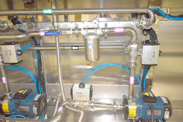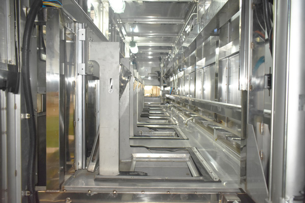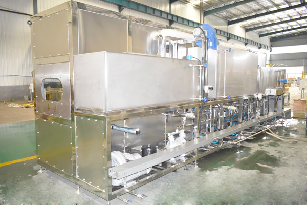 該設(shè)備有上料工位、 超聲波清洗工位× 4、 酒精漂洗工位、 風(fēng)刀切液工位、下料工位、 廢液儲(chǔ)存槽× 2、溶液預(yù)加熱槽× 2、 桁架機(jī)械手、清洗工裝、 拋動(dòng)系統(tǒng)、 隔爆溫控水浴加熱系統(tǒng)、 PLC+觸摸屏控制系統(tǒng)、 管路系統(tǒng)及智能電器控制系統(tǒng)設(shè)備等組成。該設(shè)備清洗效果好、提高了工件的清潔度。該機(jī)結(jié)構(gòu)設(shè)計(jì)及工藝安排合理、自動(dòng)化程度高、清洗精度高,有效解決了此類工件的清洗難題。